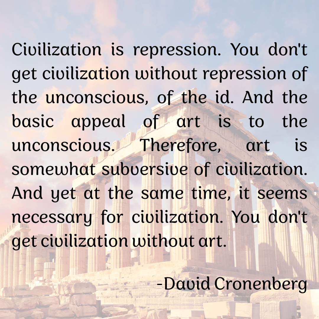 Cronenberg understood the significance and impact of uninhibited behavior on humans and society. What the church, the state, the oligarchs, and their slavish followers call “morality” (an instrument of control) is an artificial construct imposed on the rest of society to manipulate the bodies and minds of the populace through their “standards” and laws, thereby inhibiting natural human behavior. We are conditioned to fear the repercussions for using our own bodies in ways that are forbidden by “God” or the state. These actions range from particular sex acts, getting an abortion, to questioning authority. Is art, however, capable of freeing us from these chains?