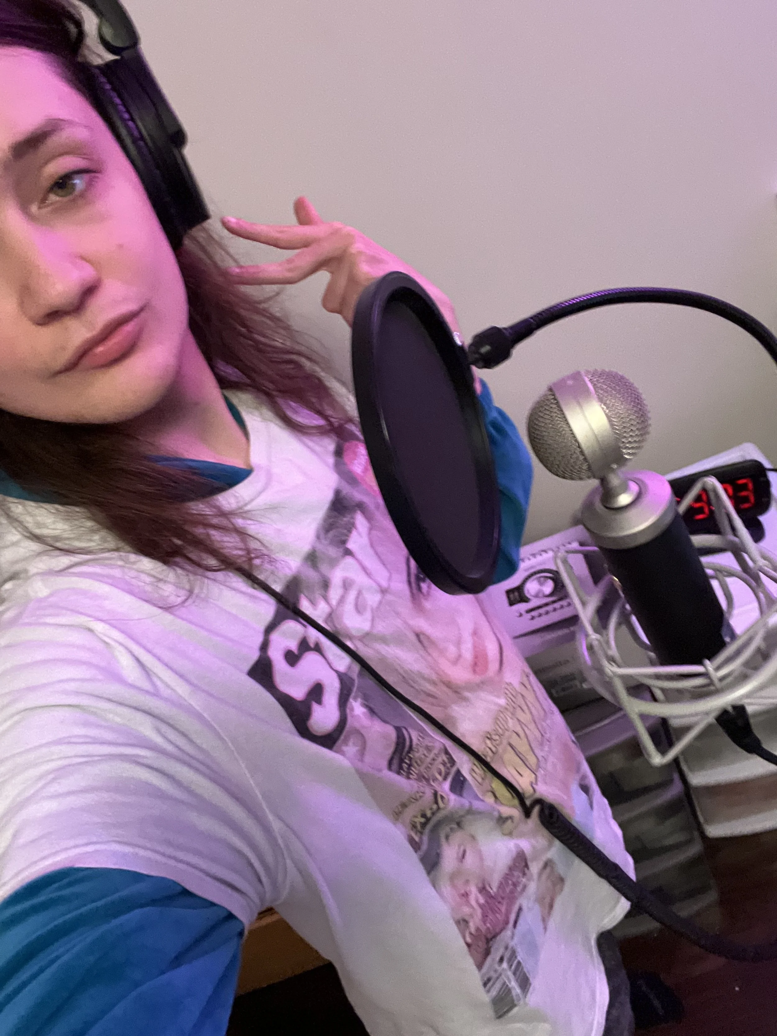 I officially moved to Bushwick from New Jersey in December of 2020, after I finally got settled, four months later in April I flew out to LA to have a girl’s trip at my bestie luvsikgrl’s place with my other best friend Nitrah Neon! It was such a cute week and what I needed, and honestly the trip was what fully awoke my transition and made me realize I wasn’t non-binary, a gay dude, none of that. We did my first photoshoot in a black and pink-striped sweater with pink-plaid Tripp pants, I had the blotchy raccoon eyes and I felt like my third eye finally opened and something was unlocked at that point, and afterwards, we recorded the first song I ever made which came to be Ri¢h B!tch Thing$! VZE had just recently made the beat, and it was a remix to, ‘I Like Money’ by the Millionaires, so the flow and energy was easy to master, but no matter how many takes I had to redo, I was so in my element and had it on lock that night, Nitrah was an incredible guide to teaching me the basics of recording vocals too, so it couldn’t have gone more perfectly.