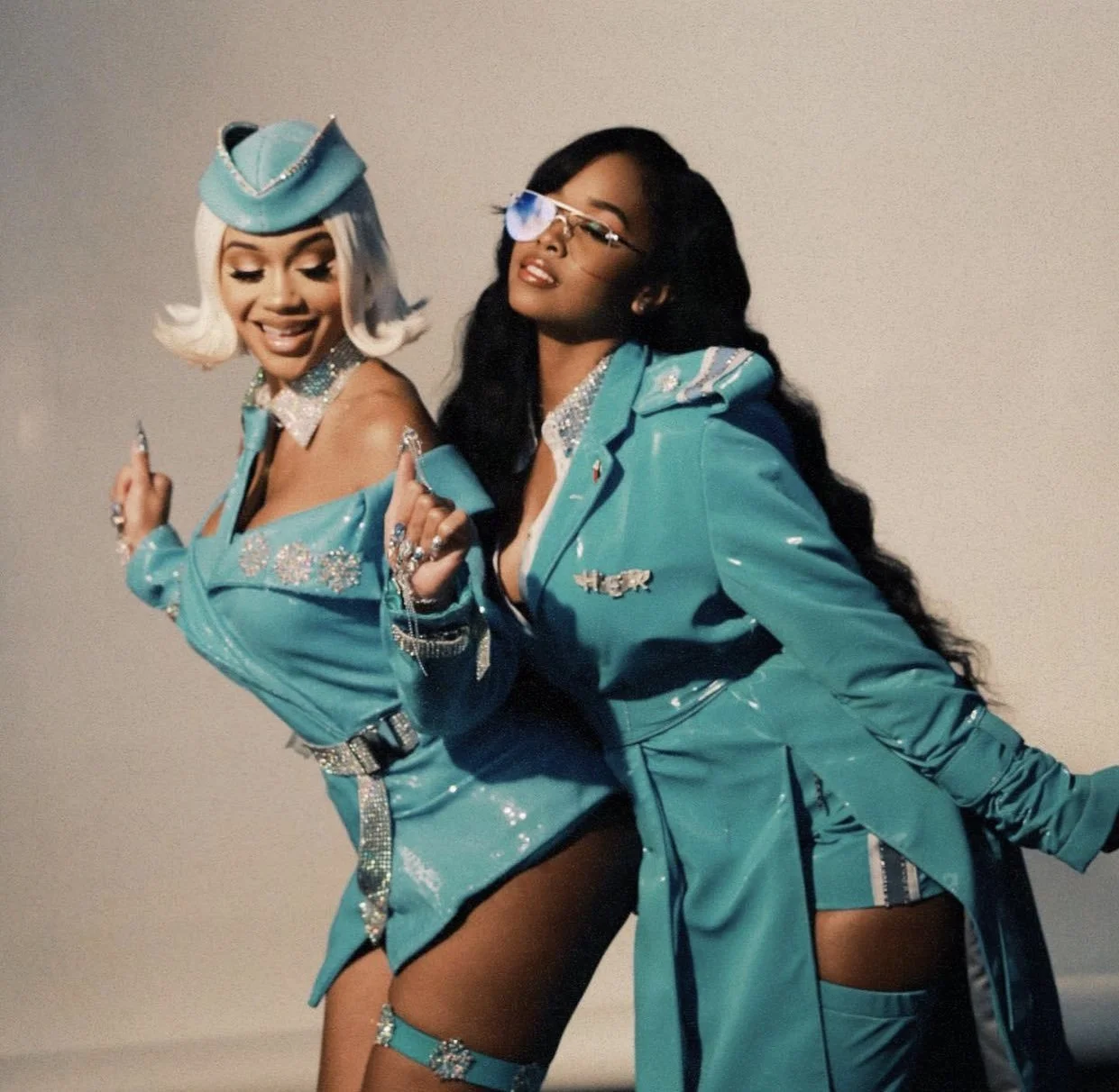 So, you could imagine my surprise earlier today when I watched Saweetie’s new video. It was a serious WTF moment. This is kind of what I had been daydreaming about listening to “Closer”, minus the bling and the women, of course (okay, the reason I didn’t include women in my fantasy is because I just wanted the whole plane to myself). What impressed the hell out of me was that flight attendant outfit that looks like it was made for “riding” rather than flying (heh). Saweetie wears the hell out of that blinged-out classic flight attendant costume, and I love H.E.R.’S pilot uniform.