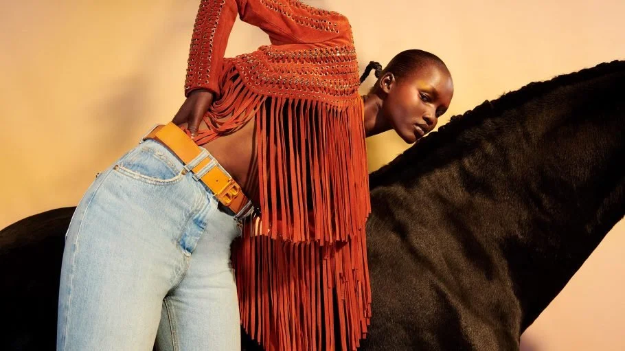 I haven’t seen it yet, but I‘m sure that many of you have by now. It’s a Netflix film by the name of “The Harder They Come”, directed by Jeymes Samuel. It takes place in the Old West and the cast is comprised of an all-star ensemble of some of the best African American actors: Jonathan Majors, Zazie Beetz, RJ Cyler, and Regina King. When Balmain creative director Olivier Rousteing heard about it, he wanted to be a part of the project, designing some of the looks that would become a part of costumes that would be worn in the film. His current line of wares is inspired by both the movie and America’s Old West, debuting today (November 3) at the same time as the Netflix feature. Olivier expressed his reason for his designs in the quote below in an interview with WWD.
