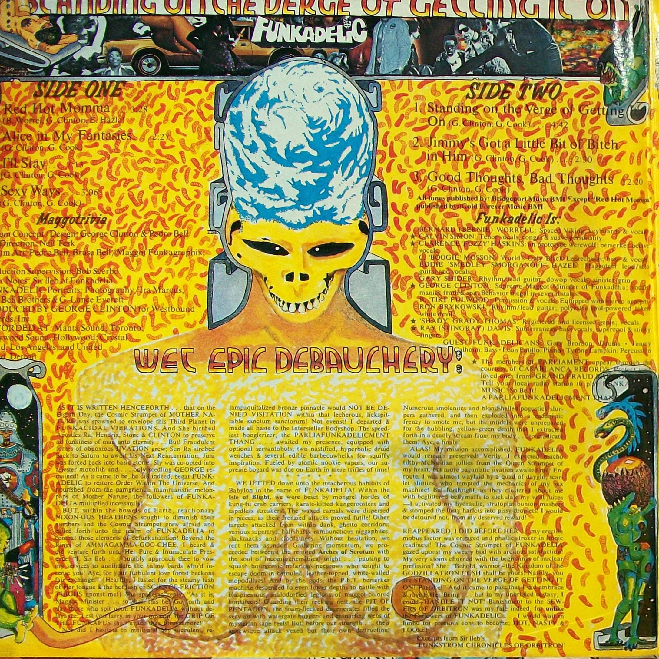 Wet Epic Debauchery is a pseudo-religious mythological story Pedro added to his art for the liner notes for Funkadelic’s Standing On The Verge Of Getting It On album (1974)